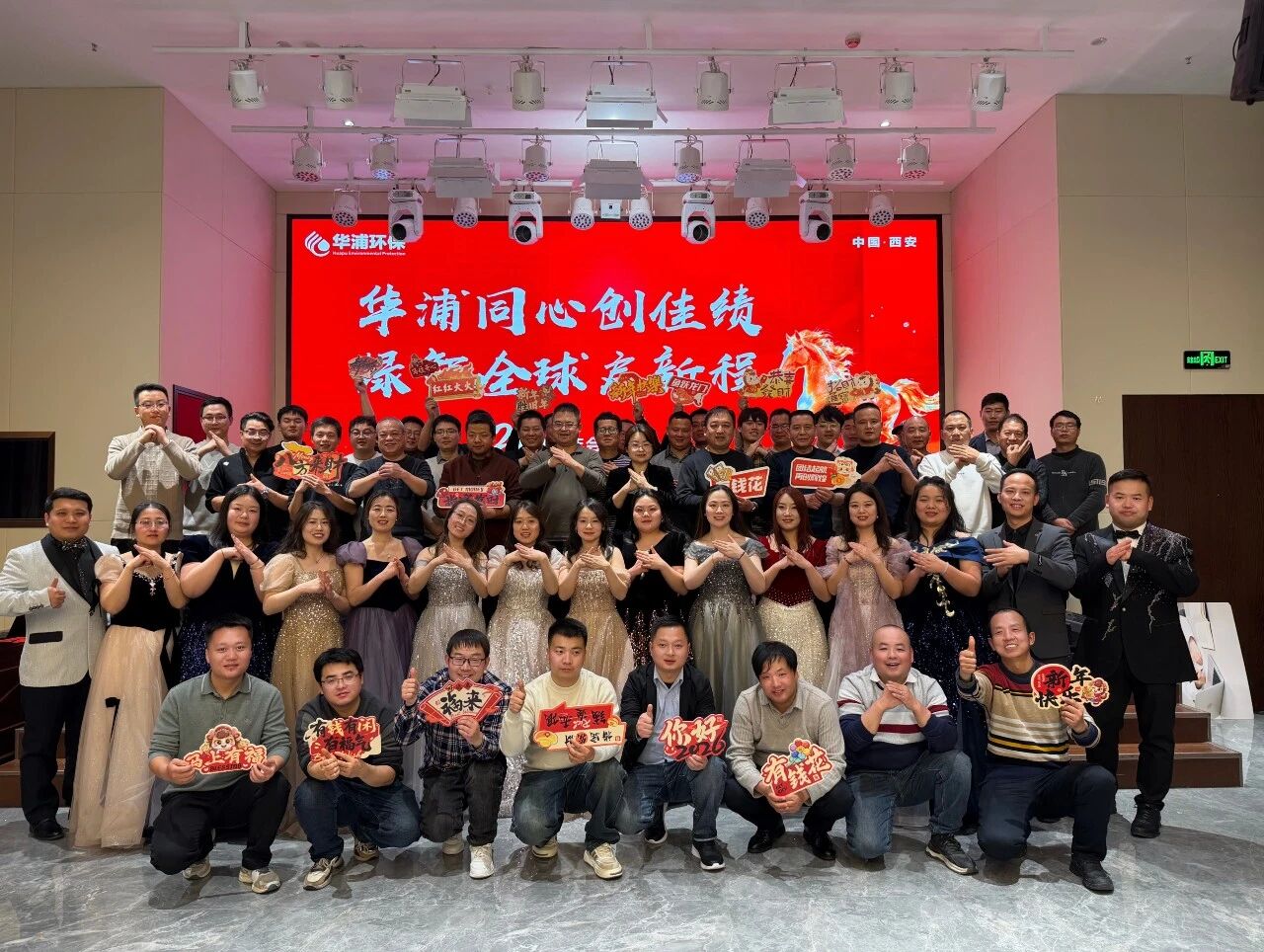 2月11日,西安華浦水處理設備有限公司(簡稱:華浦環保)“華浦同心創佳績?綠智全球啟新程”華浦環保2025年度總結暨表彰大會在西安隆重舉辦。華浦環保總裁張玫、總經理張青、副總經理張海軍,各部門及項目負責人、分公司代表、全體員工與優秀合作伙伴齊聚一堂,回顧2025年奮斗征程,部署2026年發展藍圖,共啟企業高質量發展新征程。